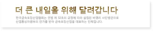주소 : (16679) 경기도 수원시 영통구 영통로241번길 12-29, 601호 (신동, 아람빌딩) 법인명 : (사)한국금속포장산업협회 ㅣ Tel : 031-202-8267~8 ㅣ Fax : 031-202-2106